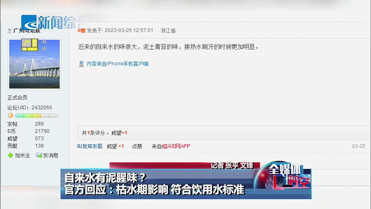 自来水有泥腥味?官方回应:枯水期影响 符合饮...