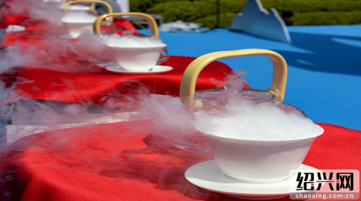 昨日上午,由中国国际茶文化研究会、中国茶叶流通协会主办的二〇二〇中国茶叶大会暨第十四届新昌大佛龙井茶文化节在该县羽林街道大明茶场茶园举行,吸引了众多客商。图为开幕式现场。